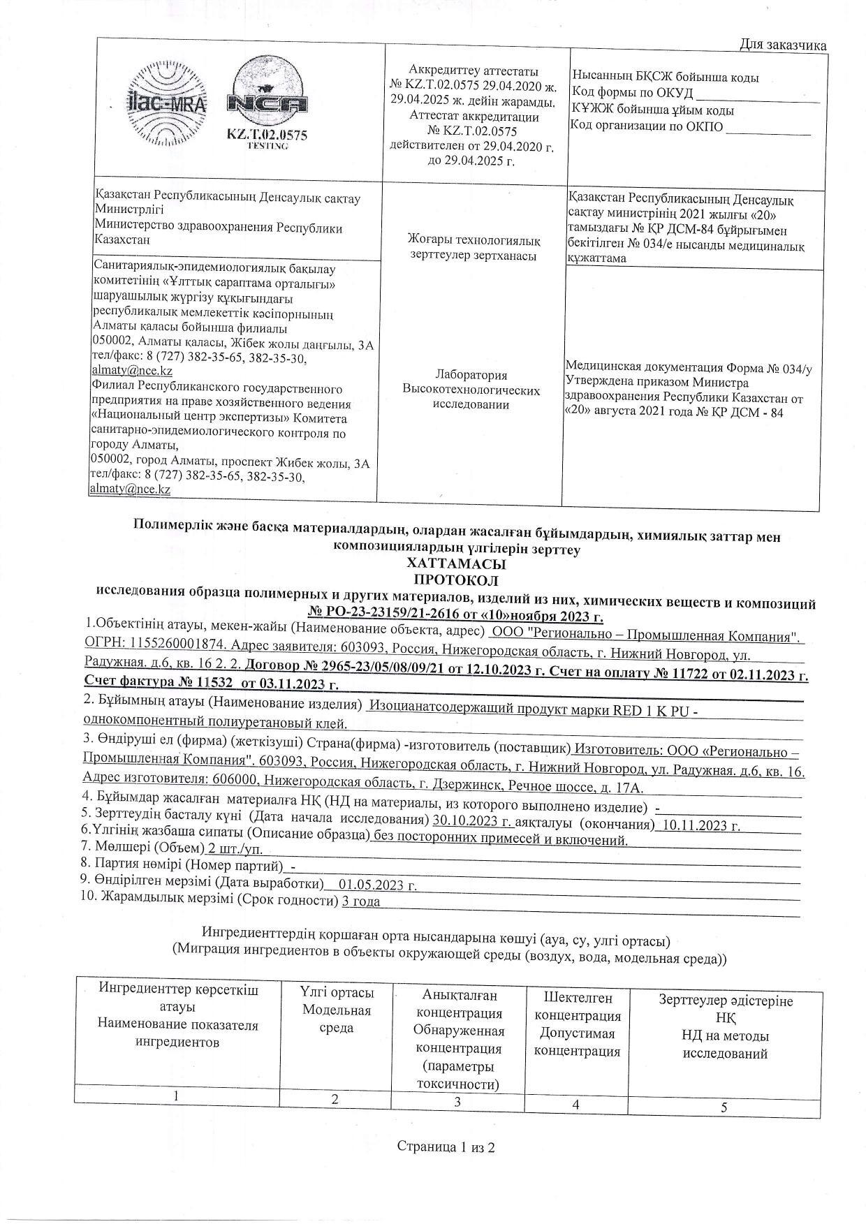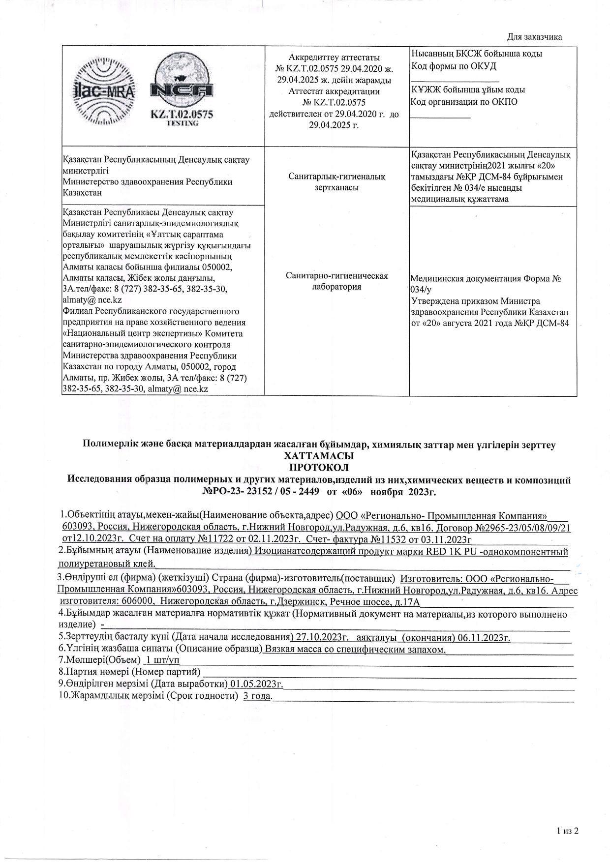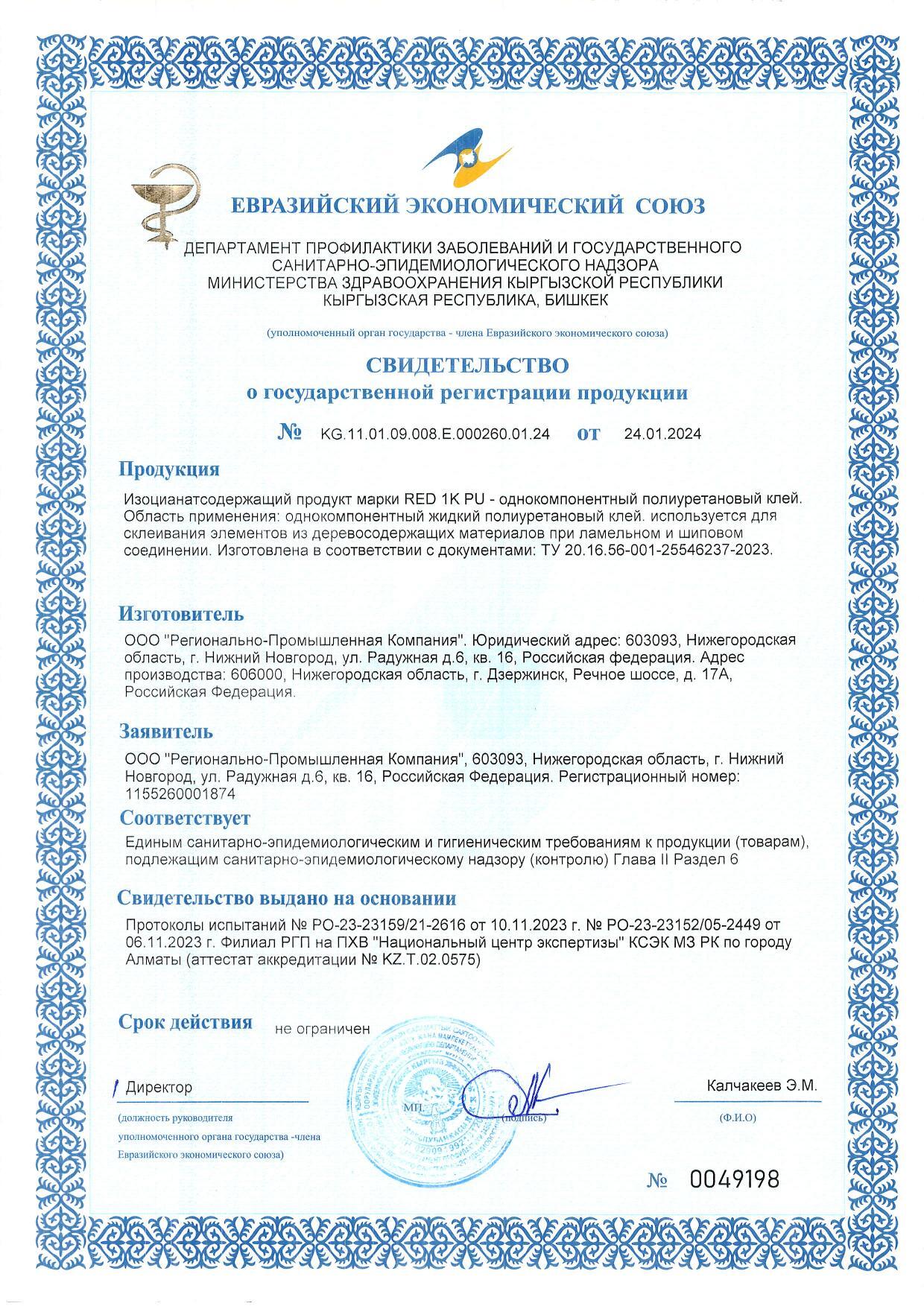 Свидетельство о государственной регистрации продукции RED 1K PU